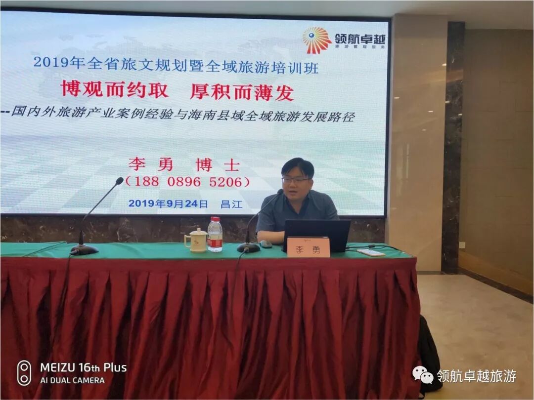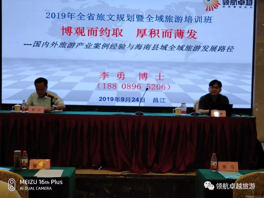 2019年9月24日,海南(nan)省(sheng)旅(lv)文廳在昌(chang)江縣組織(zhi)開展了(le)“2019年全省旅(lv)(lv)文規(gui)劃暨全域旅(lv)(lv)游(you)培訓班”,李勇(yong)博士受(shou)邀為全省各市縣旅(lv)(lv)文局分管規(gui)劃與(yu)產業(ye)開發的領導(dao)和業(ye)務(wu)骨干、3A以上(shang)旅(lv)游(you)景區負責人以及昌江縣全域旅(lv)游(you)創建工作(zuo)領導小(xiao)組成員(yuan)單位(wei)負責人做了主題(ti)為《國內外旅(lv)游(you)產業案例經驗(yan)與海南縣域全域旅(lv)游(you)發(fa)展(zhan)(zhan)路徑》的業務(wu)培(pei)訓。對于(yu)各位(wei)學(xue)員(yuan)百(bai)忙之中來充(chong)電(dian)學(xue)習(xi),李勇博士表(biao)示愿做各位(wei)學(xue)員(yuan)的“充(chong)電(dian)寶”,歡(huan)迎各位(wei)學(xue)員(yuan)有“電(dian)”沒“電(dian)”隨時來充(chong)電(dian)。李勇博士形象生動地(di)將全域旅(lv)游(you)發(fa)展(zhan)(zhan)比作(zuo)一個(ge)女子的化妝(zhuang)過程(cheng),不是面面俱到,而是要(yao)根據(ju)各地(di)旅(lv)游(you)業發(fa)展(zhan)(zhan)的實際情況,因(yin)地(di)制(zhi)宜(yi)、因(yin)時而宜(yi),注(zhu)重(zhong)整體打造,突出(chu)全域旅(lv)游(you)的示范效應。根據(ju)兩個(ge)“70%”分割點(dian),提出了海南全(quan)域(yu)(yu)旅游(you)(you)示(shi)范省建(jian)設重點(dian)在(zai)于(yu)(yu)縣域(yu)(yu)全(quan)域(yu)(yu)旅游(you)(you)示(shi)范區(qu)的(de)創建(jian),并提出了縣域(yu)(yu)全(quan)域(yu)(yu)旅游(you)(you)示(shi)范區(qu)創建(jian)的(de)“四(si)輪驅動”模式。對于(yu)(yu)完善旅游(you)(you)產品供給而(er)(er)言,提出了“抓(zhua)點(dian)、串(chuan)鏈、構面”的(de)領航(hang)卓越(yue)方(fang)案。最(zui)后鼓勵各學員在(zai)全(quan)域(yu)(yu)旅游(you)(you)示(shi)范區(qu)創建(jian)中要搶(qiang)抓(zhua)機遇、迎(ying)難而(er)(er)上、勇挑重擔(dan)。